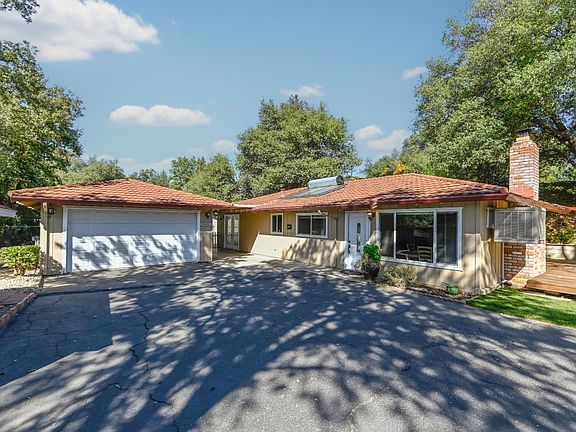 Charming Angels Camp home in a Quiet, Established Neighborhood. Welcome home to this well-cared-for 3 bedroom, 2 bath home in one of Angels Camp's most peaceful and desirable neighborhoods. Offering 1200 sq. ft. of comfortable living space, this home blends modern updates with classic charm. Step inside to find newer vinyl plank flooring, a cozy gas log fireplace, and bright, open living areas. The kitchen features solid surface countertops and plenty of cabinet space-perfect for everyday living and entertaining. Enjoy all new dual paned windows and a stylish new front door that fill the home with natural light. Enjoy dining outside on the detached wood deck in the beautifully shaded yard. The third bedroom doubles beautifully as an office, featuring French Doors that open to the inviting breezeway-a lovely spot for relaxing or connecting the home to the detached garage. A carport provides additional parking roomy enough for a boat. This home is located close to schools and shopping and feels very secluded at the same time. It is the ideal combination of comfort, function, and location!