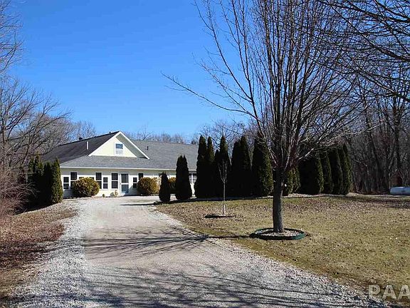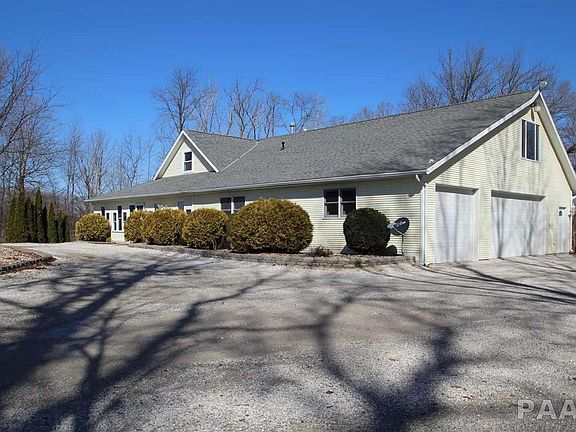 Escape to this private 32 acre wooded retreat with approx 12 acres tillable. Custom built, one owner home with open floorplan. Fireplaced great room with cathedral ceiling & multi-sided fireplace. Spacious kitchen features maple cabinetry, large island breakfast bar & SS appliances including 6 burner dual fuel range/convection oven/infrared broiler, warming racks & pot filler. Walkout LL master suite with built-in king size bed, cedar lined WIC & private bath with dual sinks & dual showers. Huge garage can accommodate 5 cars plus has workshop & built-in pit. Wraparound enclosed 3 season porch.
