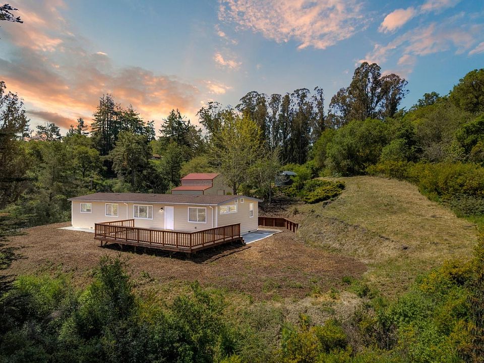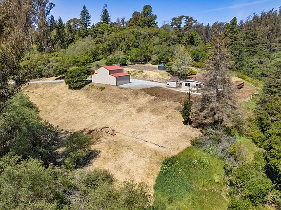 3 Bedrooms + Large 4th/Office. Bamboo flooring, & natural slate tile in kitchen and dining area. All solid interior doors. Fresh paint inside and out. Dual-pane vinyl windows. Expansive redwood deck with views. Brand new butcher block countertops & bar. Stainless appliances including a high-end Wolf range with center griddle. Custom tile & river rock shower in hall bath. Bathtub, custom tile shower, & heated floors in primary bathroom. Walk-in closet with custom shelving & organizers in the primary bedroom. Built-in shelving/entertainment center in living room. New roof in 2022. Fire resistant hardie plank siding. Upgraded 5000 gallon water storage tank with fire hydrant access. Keypad entry front gate with battery back up. 1400+ sq ft metal multi-use workshop building on foundation built in 2008. High-speed internet via Spectrum. ATT conventional phone line available. Cell phone signal coverage at location. Sunshine and privacy abound on over 2.5 acres of paradise!