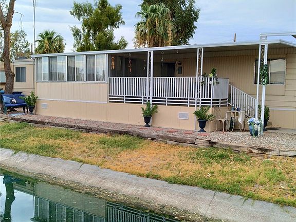 HIGHLY MOTIVATED SELLER IS YOUR OPPORTUNITY TO ESCAPE THE MADDING CROWD FOR UNDER ONE HUNDRD GRAND! Waterside living just steps from the Colorado River in this turn-key, low maintenance 2 bedroom, 2 bath split-master gem in beautiful Verde Shores 55+ mobile home park. Just about a mile from the golf course, restaurant and bar, and at the River for fishing, boating, sunning, and playing on gorgeous private sandy beaches in sun-drenched private coves, launch your boat to explore the gorge, or go to Havasu or Bullhead/Laughlin on the River, or stroll the verdant parks under the swaying palms.