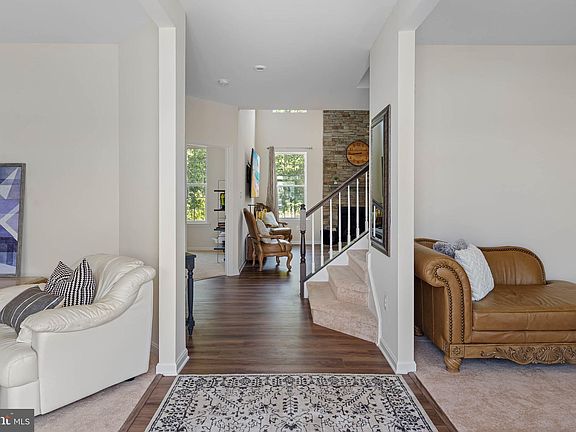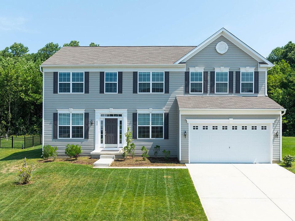 ** VA ASSUMABLE LOAN AT 2.625 INTEREST RATE** Magnificent space, modern amenities, and must-see floor plan in Magnolia home! Striking stone wall and flowering bed at entrance, glass-like ponds dotting landscape and picturesque farmland just beyond is the setting of the beautiful countryside community of Chestnut Ridge as well as this stunning gray siding/black shutter stately 2-story 4BRs/3 bath home. Series of windows stretch across front of home confirming home’s expansive size, while bumped-out, front entry 2-car garage features transom windows and sits adjacent. Slightly recessed front entrance with detailed millwork repeats elegant transom window and grants access to home of soaring ceilings and sun-infused space. Hardwood floored foyer is nestled between spacious beige carpeted LR with dual window on front wall and plenty of space for conversation furniture and coordinating artwork, and DR which also features dual window/beige carpeting along with pewter chandelier. Front rooms of home offer balance and beauty! Hardwood hall leads past carpeted steps to upper level, and angled room that is tucked to back of home and is perfect for office or library. Peaceful and off main space, it offers ideal nook for quiet work or comfortable reading spot! Sprawling back of home is all about angles, open space, and upscale accents! Magnificent great room, charming breakfast area and gourmet kitchen blend together and create easy- movement floorplan for easy everyday living. Contemporary style mixes with eclectic amenities to create polished, on-trend ambiance! Stunning floor-to-ceiling stone FP is framed by double stacked windows and graces back wall of this vaulted ceiling great room and is a commanding accent that can be appreciated from front foyer thanks to clever design of home. Wide plank barnwood floors only serve to highlight FP and offer rustic touch, while area rug can add splash of color and warmth. There is abundance of space for assortment of cozy seating and complementary side/coffee tables. Great room transitions to sun-splashed breakfast area with contemporary black wrought iron ceiling lighting. Space is ideally positioned in front of glass sliders with views to backyard and is sizable enough for full dining set, allowing conversation to mingle with culinary tasks in kitchen just past. Kitchen boasts white cabinets with on-point pewter hardware with room above cabinets for assortment of pretty plates, pitchers, and plants, while sleek SS appliances (double oven) are paired with gray granite countertops to offer iconic contrast. Enjoy separate countertop for bar/coffee station, perfect for expresso machine and/or wine glasses, and adjacent is desk and pantry. Upper level offers 3 spacious secondary BRs with neutral paint, double windows, and large closet space, along with baths that mirror modern vibe of grays, whites, and pewter accents. Sweeping primary suite boasts grand DD entrance! Its trio of windows allows natural light to envelope room, and walk-in closet is perfect for all-season wardrobes and must-have accessories. Private bath is luxurious in every way!Relax with granite dual sink vanity, big shower and opulent soaking tub enhanced by corner window and surrounding white tile ledge for towels, soaps, and candles! Finished basement is a bonus of extra space! Arrange collection of furniture around big-screen TV. Add in fuse ball and ping pong tables. Create chat and snack area with high-top table and chairs. Plus, there is wonderful storage room! Backyard is level and offers endless possibilities. Build a deck, add a terrace, or construct a firepit and seating. The choice is yours. Best of all, thriving mature-aged trees surround the property in privacy. It’s your own little world and it’s your chance to own this charming home in Chestnut Ridge!