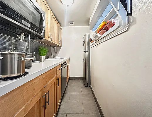 high ceilings, a private balcony, large queen size bedroom with a walkin closet, a full kitchen with a dish washer and SS appliances ! Building has an elevator and laundry room, and has a super on site for anything you may need help with!