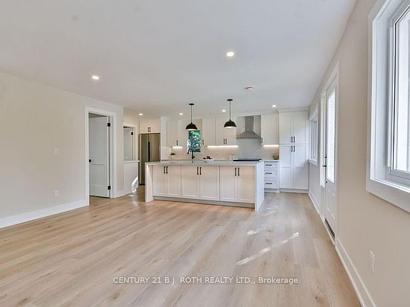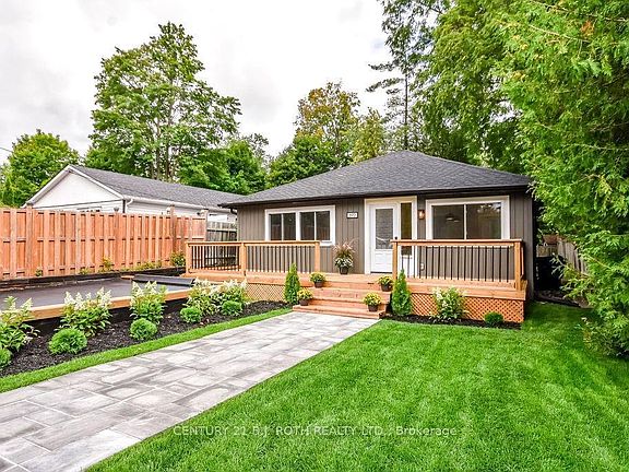 Welcome to this charming bungalow, perfectly located just a short walk from Lake Simcoe, Innisfil Beach Park, and the Innisfil Boat Launch. Seton a large, private lot in the desirable community of Alcona, this home offers both the serenity of lakeside living and easy access to Hwy 11 &400 for a quick commute. Inside, the bright and spacious open-concept main living area is highlighted by a cozy gas fireplace and flows seamlessly into a beautifully renovated kitchen. Designed with both style and function in mind, the kitchen features solid wood cabinetry, a large island with waterfall quartz counters, under-cabinet lighting, pot lights, and stainless steel appliances. The primary bedroom includes a walkout to the new deck, while the updated bathroom and additional bedroom provide comfort and convenience. Extensive updates throughout the home include new shingles, plumbing, electrical, heat pump, bathroom, kitchen, deck, and fresh landscaping. The expansive yard offers endless opportunities to relax, entertain, or enjoy family time outdoors. Whether you're looking for a year-round residence or a weekend retreat, this property combines modern updates with the best of lakeside living. This home is truly a must see! Some photos have been virtually staged to to show potential.