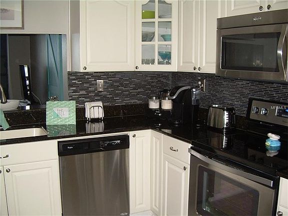 SELLER'S MOTIVATED!!! PRICE DROP!!! Water Front Complex with Lower Level Water View! This 2 bedroom/2 bathroom 1150 sq. ft. condo has split floor plan, Kitchen open to Dining room, Living room and Balcony. Balcony is assessable from Living room and Private. This Condo has one Covered Parking space #19.The whole unit has been updated, new appliances and floors/tile thru-out the whole place, all outlets replaced, switches, covers and ceiling fans. Both bathrooms are completely renovated with new toilets, vanities, tub and shower. All new tile in both tub and shower and new tile backsplash in kitchen. Also the whole unit has been freshly painted. Pets allowed, 1 @ 50 pounds or 2 @ 25 pounds each. Located in the self-contained Island Estates community with it's own shopping, banking, restaurants, post office, pharmacy, and more. Close to the award winning Clearwater Beach. The community features a heated pool, spa, tennis courts, waterfront boardwalk, BBQ grills, dock with boat slips that are available for rent/sale.