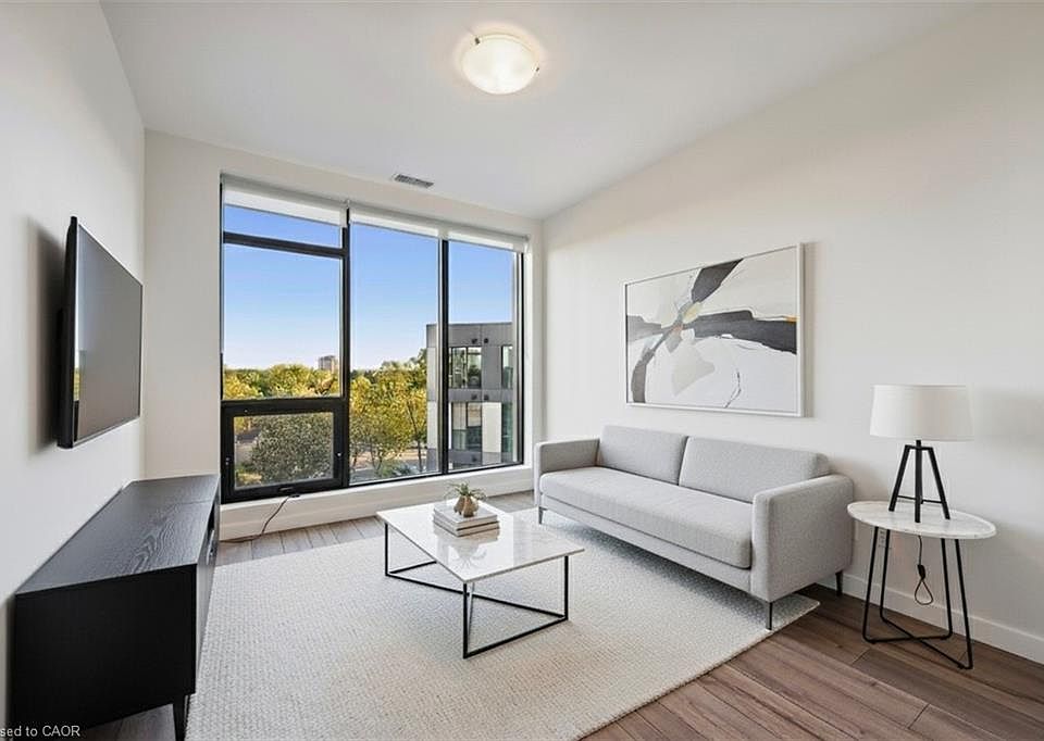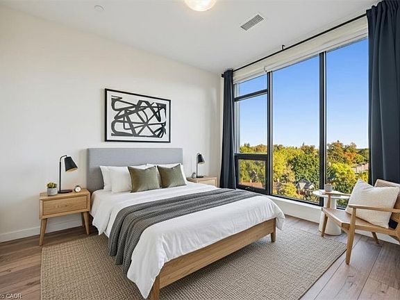 Penthouse level 1 bed + den condo with underground parking, only a 5-minute walk to Google and 15-minute walk to the Go Train Station. 9 foot ceilings, floor to ceiling windows with stunning views of treetops, and a modern open-concept layout with quartz counters, stainless appliances, and an island perfect for entertaining. The primary bedroom includes a walk-in closet, while the den makes an ideal home office. Enjoy the convenience of underground parking, a storage locker, and amenities like a gym, party room, and rooftop terrace. Steps to the ION LRT, Google, Grand River Hospital, Victoria Park, and all the restaurants, cafes, and nightlife of Downtown Kitchener and Uptown Waterloo. So if you've been dreaming of a top-floor, modern condo in the middle of KW's tech and creative hub that gives you walkability, transit at your doorstep, and the kind of vibe that makes you excited to come home every day... Book your private viewing today and see for yourself.