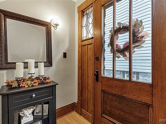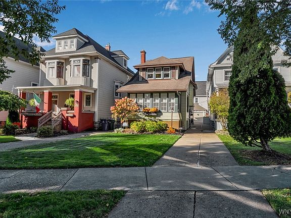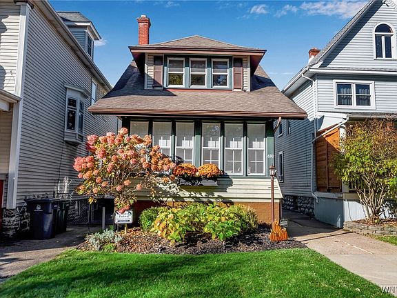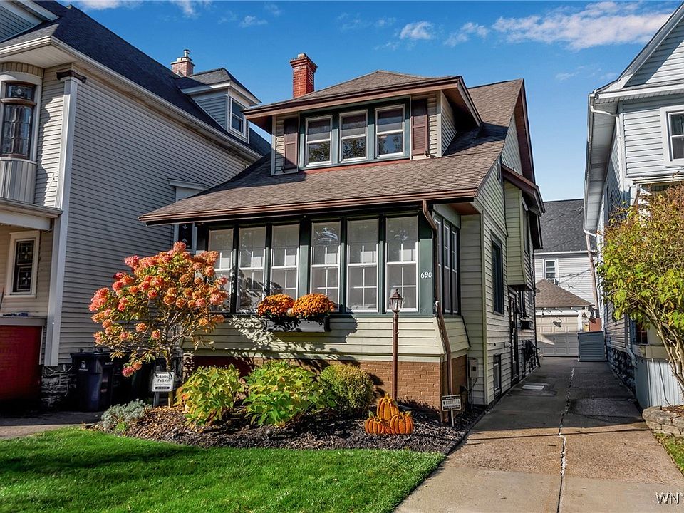 Welcome to 690 McKinley Pkwy - where timeless elegance meets modern living. Nestled on one of South Buffalo's most prestigious streets within the McKinley Parkway Historic District, this impeccably maintained Bungalow is truly move-in ready. Enter through the back door entryway into the tastefully updated kitchen which showcases quartz countertops, soft-close cabinetry and new stainless appliances. Entertain in style in the formal dining room or unwind in the sunlit living room featuring a gas fireplace and leaded glass windows. A heated sunroom offers the perfect retreat for morning coffee or afternoon relaxation. Upstairs three beautifully finished bedrooms boast hardwood floors and a refreshed full bath. The professionally finished lower level adds approximately 400 square feet of versatile living space with a kitchenette, TV area, full bath, laundry room and guest room (State variance approved). Enjoy a fully fenced backyard oasis with a composite deck and covered pergola along with a one car garage. In addition there is professionaly installed, color-changing outdoor landscape lighting. Furnace, AC and tankless hot water heater approx. 4 years old. Electric updated (150 amp) in 2014 and an additional panel added in 2021 to accommodate new furnace and AC. A rare find in a historic setting! Showings begin immediately. Offers, if any, are due Tuesday, November 4, 2025 by 5 p.m. Best and final. Square footage is different from tax records and is based on Appraiser's report.