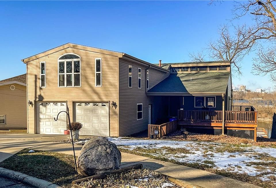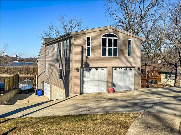 If you're in the market for a spacious lake home, this is it! Large and very unique home with a 4 car attached garage, wrap around deck and a boat and ski dock right on the lake! Spacious rooms throughout with master bedroom and updated en suite on main floor. The lower level offers 2 more bedrooms and a family room. Basement walks out to the backyard where you'll find its easy to entertain here. Call today to schedule your private showing!