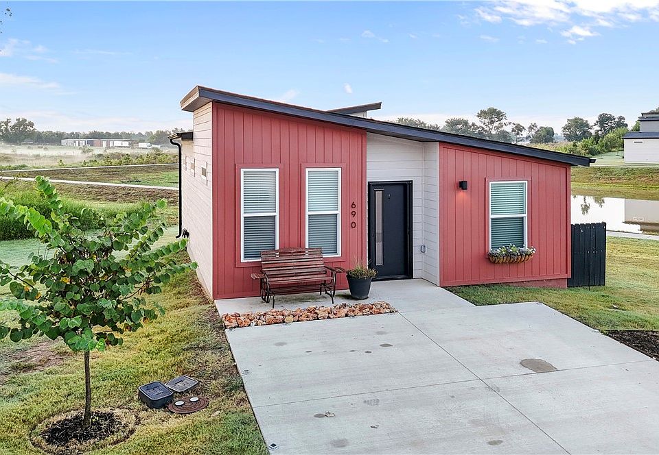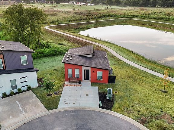 Discover the epitome of modern living in this adorable Bungalow! Nestled on what is arguably the best lot in the neighborhood, this property boasts serene pond views, breathtaking sunrises, no neighbors to the right and a secluded back patio from a cleverly positioned house. Step out onto the walking trail right from your backyard, leading directly to the dog park and pickleball court for endless recreation. The home offers easy access to mountain bike trails and other local attractions. Inside, you'll find soft-close kitchen cabinets with custom organization and energy-efficient windows that tilt in for easy cleaning. Retractable screen doors, Custom solar lighting, wainscoting, Murphy bed, appliances, kitchen counters, backsplash, enlarged patio, custom landscaping and wildflower garden have all been upgraded from builder spec. POA $75 a month, including yard care. Only 5 from the Bentonville square and WM home office. For the right offer, all appliances can be included.