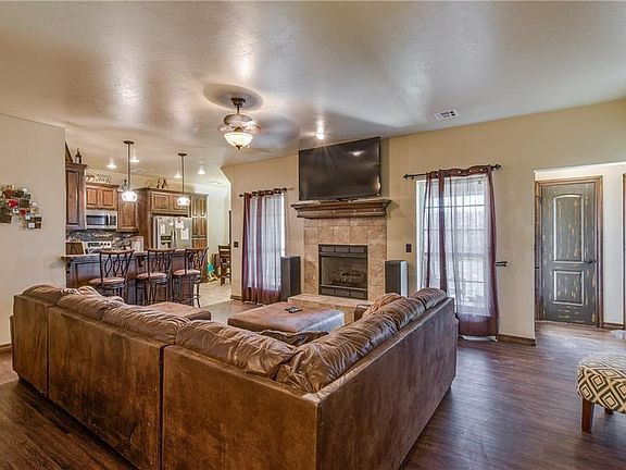 Do not miss this beautiful home! Centrally located in the heart of Moore, you are near endless restaurants and shopping. This newly developed neighborhood has a kid's play area with a fun splashpad and walking trails for those who enjoy a relaxing stroll. The home boasts a beautiful kitchen with rich, beautiful, dark wood. The dining area has a beautiful bay window. Spacious breakfast bar allows for several to enjoy food and conversation. Beautiful dark floors compliment the fireplace in the cozy living room. Master bedroom has vaulted ceilings and an amazing en suite with a Jetta brand jet tub and two closets. Adding to this lovely home is a great bonus room that can be used as an office, game room, or even guest room! In the spacious back yard sits a 12'x8' storage shed. Schedule your private showing today! NOTE: Google Maps and other phone maps will not be correct. Use instructions entering from 19th St and Eagle Ln Res items: Water filtration system, refrigerator