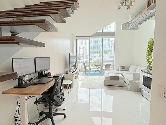 Unfurnished- Discover urban luxury living in this stunning two-story loft with mesmerizing city views. Boasting an expansive layout and upscale finishes, this residence offers a perfect blend of sophistication and comfort. Centrally situated, it provides convenient access to Brickell City Center and a variety of restaurants, all while enjoying breathtaking vistas of the city and the Miami River.