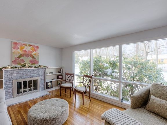 OFFERS DUE TUES. 3/28 AT 5PM, VALID UNTIL WEDNESDAY AT NOON. Pristine mid-century modern trilevel home on large corner lot. Extensively renovated in recent years, this home boasts an open concept first floor perfect for entertaining. The kitchen, renovated in 2016 features white shaker soft close cabinets, granite counters, stainless steel appliances. Hardwood floors throughout first and second floor. Bright and sunny living room with a wall of windows and wood burning fireplace. 3 spacious bedrooms on the second floor include ample closet space and a primary suite with full bathroom. The mudroom with laundry area adjacent to the oversized 2 car garage features 2 custom built closets for storage. Enjoy home office space in lower level with a picture window overlooking the private back yard and family room with it's own fireplace. Enjoy evenings on the sunny enclosed porch and step down to a partially fenced in backyard.