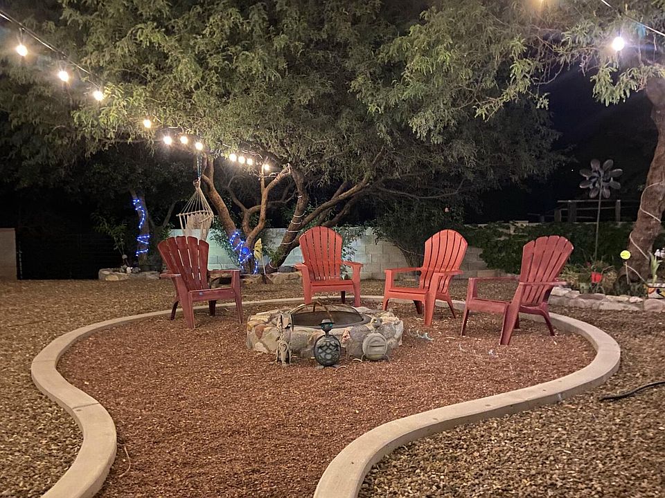 This home has 1.25 acres and a gorgeous backyard that is great for relaxing or entertaining which includes a built-in pool and spa that are fenced. Enjoy a small grass area, firepit and lovely lighted gazebo for those backyard barbecues. Covered back patio. The interior has a great open floor plan with vaulted ceilings and dormer lights and tile flooring. Kitchen with island sink. Newer AC unit. Large bedrooms with new flooring.The property has horse corrals and RV parking with power. Finishing touches being done to the master bath and photos to come.