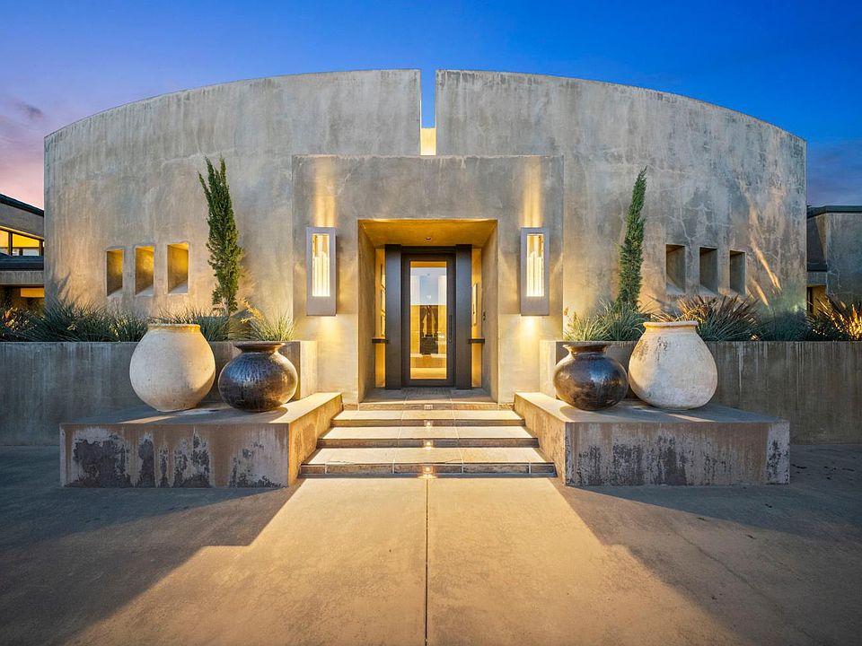 Set within the gates of Rancho Del Rio, this architecturally driven estate, designed by Conrad Sanchez, offers a rare blend of privacy, modern refinement, and thoughtful design. Positioned on 1.43 acres, the home opens with a tranquil courtyard leading to interiors defined by clean lines, generous volume, and effortless flow. The great room, lounge, bar, dining, and family spaces create a sophisticated setting for both everyday living and elevated entertaining, while the chef's kitchen features professional-grade appliances and ample workspace. The primary suite provides a private retreat with access to a secluded outdoor patio, dual custom closets, and a spa-inspired bath with an oversized shower and soaking tub. A light-filled loft adds flexibility for fitness, work, or quiet retreat. Designed as a seamless extension of the estate's architecture, the guest casita offers its own kitchen, laundry, and private garage. Outdoors, you'll find multiple patios, a pool, raised garden beds, and mature landscaping that create a resort-style environment. A climate-controlled, heated-floor garage accommodates up to seven vehicles plus golf cart storage. Moments from a premier private golf club, this estate blends architecture, lifestyle, and privacy.