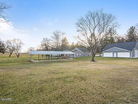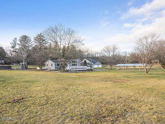 Don't miss out on this beautiful executive ranch home sitting on just over 4 acres! So much open space and gorgeous views.This house boasts 3 bedroom, 2 1/2 bath, both bathrooms have heated tile floors, coat room, a couple family rooms,in the area just off the kitchen there is a beautiful gas fireplace to help warm you up for winter, and an attached 3 stall heated garage with plenty of storage above. Home also has central air, the furnace works with LP or there is an outdoor wood boiler that also heats the house and water heater. Go out and look at the 2 story professional tree house, or you can play with some things in the 48x60 pole barn. Even more storage in the 42x9 lean to that is attached. Ready to eat? There's a covered picnic area in your backyard. There is also in ground sprinkling
