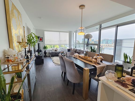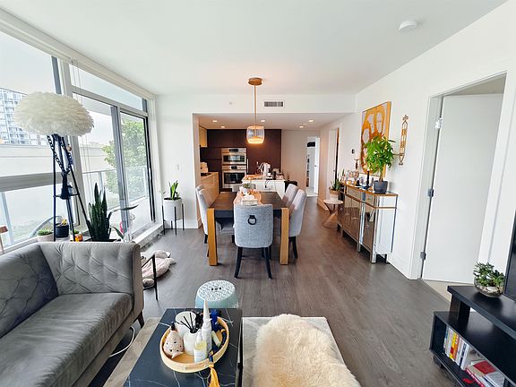 River Park Place II by Intracorp – Immaculate SE corner 2 bed + flex home, 977 sf, with views of mountains and city, all from the quiet side of the building. Bright open layout with high ceilings, central A/C & heating, Bosch appliances, and double vanity in the bath. Resort-style amenities include basketball court, 2 gyms, rooftop garden, lounges with kitchens, BBQ area, games & billiards rooms, music & study rooms, and more. Prime Oval Village location steps to T&T, Rona, restaurants, banks, River Rd dike trails, Richmond Hospital & Minoru Centre. School catchments: Brighouse Elementary & Richmond Secondary. Includes 1 parking & 1 locker. Maintained like new—move in and enjoy!