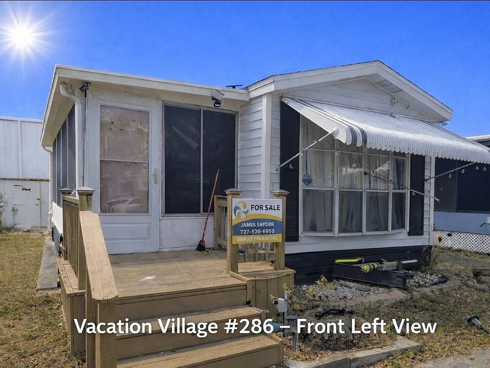 Welcome to Encore at Vacation Village, Largo's premier all-ages, pet-friendly, resort-style community offering low lot rent of just $685 per month, which includes water, sewer, garbage, and landscaping. Electric is billed directly by the community based on usage, helping keep monthly costs affordable and predictable. Residents enjoy outstanding amenities including: - Large heated swimming pool - Active clubhouse with scheduled events - Billiards, library, foosball - Card tables and club tables - Volleyball and tennis courts - On-site laundry and shower facilities And much more!!!! Centrally located in the heart of Largo, you're just minutes from major shopping, dining, entertainment, airports, and award-winning Gulf beaches - making this an excellent option for a full-time residence, seasonal getaway, or value-add investment. The Home - 1990 ' 576 Sq. Ft. ' 1 Bed ' 1 Bath ' Vaulted Ceilings This 1990, 576-square-foot, one-bedroom, one-bath handyman special offers solid bones and serious upside potential. Exterior Features: - Wooden deck entryway - Large bay windows - Hurricane shutters - Shingle roof - Window A/C - Storage shed - Backyard with privacy fence Interior Features: - Cathedral ceilings with ceiling fan - Indoor washer/dryer hookups - Gas stove - Two-door refrigerator - Bathroom with double vanity and vessel sink - Bathtub/shower combo - Bedroom with ceiling fan - Built-in dresser and closet ** Disclosure: Subfloor in living room has a soft spot near the window A/C and will need repair. Home is currently in the process of being cleaned out. With fresh paint and new flooring, this home could be completely transformed. The "Now" condition photos reflect its current state - and the "After" vision shows the opportunity waiting to be unlocked. Opportunity Alert: Properties in this highly sought-after, amenity-filled community do not last long - especially value-add opportunities at this price point. Schedule your walk-through now and bring your vision. This is your chance to create equity in one of Largo's most desirable communities. Community Approval Requirements: All buyers must complete and pass the community approval process prior to closing. Requirements include: - Background check (no felonies) - Income verification - Rental verification - No evictions within the past 7 years - No bankruptcies within the past 7 years - No foreclosures within the past 7 years