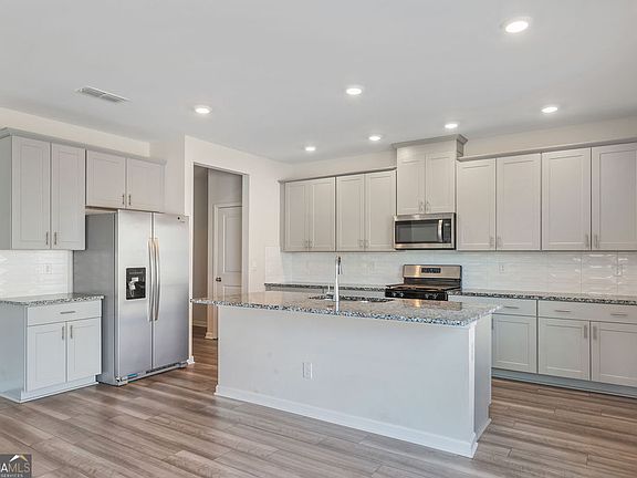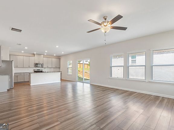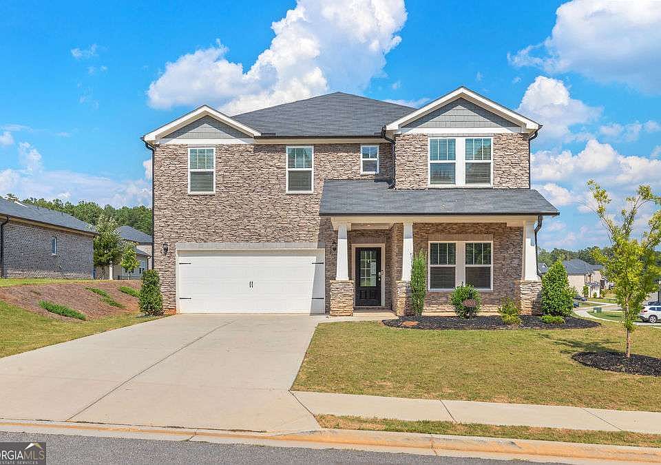 This is your opportunity to own the largest floor plan in Creekside at Oxford Park in a bustling park of South Fulton. This 3-sided brick Taylorsville floorplan, built in 2022, feels like new and is loaded with energy-efficient features. Offering over 3,200 sq ft, the home includes 5 bedrooms and 4.5 baths with a dedicated guest suite and full bath on the main level. The layout is perfect for multi-generational living or guests. Spacious and with tons of room for storage, this integrated living space flows seamlessly from the kitchen into the living and dining spaces. A flex loft upstairs adds versatility for a media room, office, or play area, while the primary suite offers an en-suite and large walk-in closet. Designed with Meritage's advanced energy-saving systems. The home is still under the builder's structural warranty and has been designed to including features such as spray foam insulation, high-efficiency HVAC, and smart home integration providing long-term savings for the new homeowner. Creekside at Oxford Park offers easy access to trails/parks, local shopping and dining in Downtown Fairburn. The community has it's own pool, playground and clubhouse.