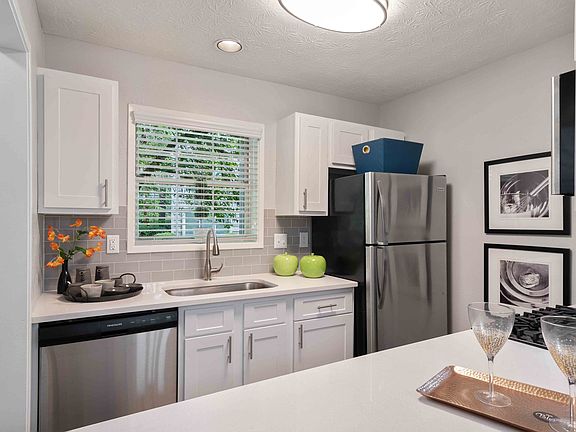 - Exterior features: Attached Garages w/ Remote Control*, Availability 24 Hours, Barbecue, Business Center, Clothing Donation Center, Courtyard, Free Weights, Granite Countertops, Group Excercise, Modern, Cherry-Finish Cabinets*, Newly Upgraded Interiors*, On-Site Maintenance, On-Site Management, Outdoor Fireplaces w/ Seating Area, Pet Park, Plush Carpeting, Serene Landscaping, Short Term Lease, Smart Home Integrated Apartments, Spacious Closets*, Stainless Steel Appliances, Tennis Court(s), View Type: Private, Wooded Views