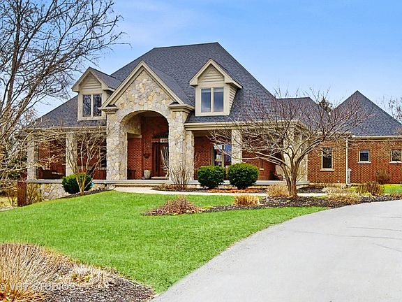 Original owners offering their uniquely designed custom built home. No detail was overlooked in this stunning, meticulously cared for, full masonry home on approximately 1.7 acres in the sought after neighborhood of Spring Grove Estates. Set back off the road, you are welcomed to this exceptional home by a charming, generous wrap around front porch perfect for enjoying the sunrise with your morning coffee. Upon entering the marble-tiled foyer with custom lighting, you are greeted by an open sunlit floor plan. The large, main level great room with a custom, floor-to-ceiling stone fireplace, provides an impressive view of the expansive backyard as well as french door access to the massive, two-tiered Timbertech deck featuring a hot tub and outdoor fireplace - perfect for viewing the beautiful sunsets. The kitchen features a large center island, gorgeous maple cabinetry with granite counters, and a breakfast area with a coffee bar and wine fridge. Off the kitchen is a hall leading you to the large screen porch, a powder room with custom cabinetry, a spacious storage/coat closet, the laundry room and the oversized 3 car garage which includes private access to the lower level. The main level Master bedroom includes a custom walk-in closet and ensuite bath with large jacuzzi tub, walk-in shower and split his and hers vanities. An additional bedroom on the main level has an ensuite bath. The second level boasts two large bedrooms each with ensuite bathrooms as well as a large spacious walk-in attic suitable for build out. Pella windows and doors, hardwood floors, solid wood interior doors, custom wood base and trim exemplify the quality craftsmanship of the home. The home includes custom Hunter Douglas blinds throughout the main and second levels. Look no further for your perfect entertaining area. The huge, lower level is tailor-made with a contemporary designed accent wall, a second natural stone masonry fireplace, a bedroom, full bath, and a newly custom designed kitchen with high-end built-in appliances, - a true retreat. Kinetico water softener system and zoned HVAC provides year-round comfort while the new architectural roof and gutters ensure peace of mind. This home is an exceptional offering. There's nothing to do but move in and enjoy life!