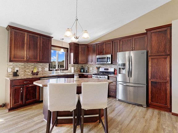 This move in ready, one owner home shines with pride of ownership. It sits on a .31 acre pond lot with a fully fenced in backyard and features newly updated flooring throughout the living room, kitchen/dining areas, a breakfast bar, kitchen window, 12x12 deck, vaulted ceilings, heated/insulated three car garage, 3 bedrooms on one-level and a private master bathroom with a large walk-in closet. You won't find lack of storage here! The spacious utility room, under stair crawl space and outdoor shed will hold all your cherished items. The walk out lower level, complete with a beautiful paver patio, features a nice size family room, a den/office with sliding french doors, 3/4 bathroom and bedroom. Great options for guests or growing families. Conveniently located near bike trails, elementary schools and more!