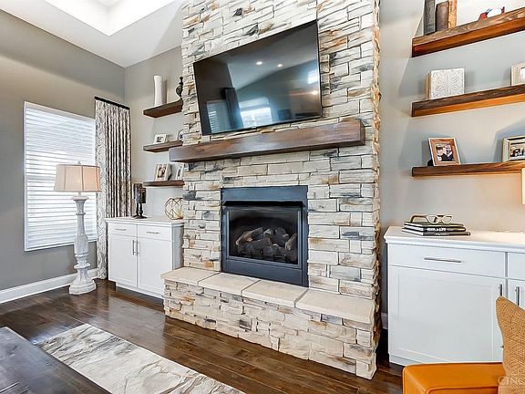 Open concept floor plan, warm colors throughout. Stunning great room, floor to ceiling fireplace, coffered ceilings. Corian countertops, shaker style cabinets. All hardwood on the first floor. Finished lower level, full bath. Patio and covered deck. HOA covers grass cutting, landscape maintenance, snow removal. Owner/Agent