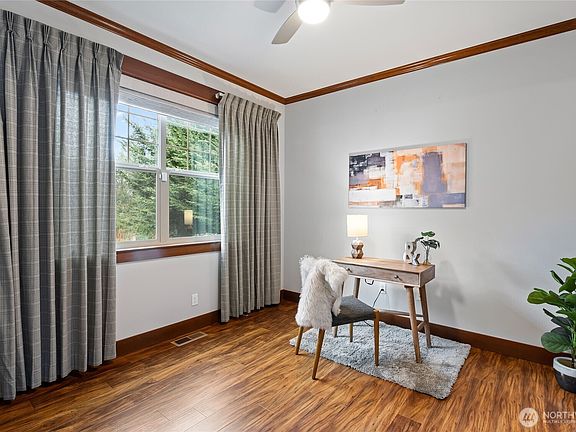 You have stumbled upon the elusive rambler that you have been searching for in Gig Harbor. This beautifully designed 3-bedroom, 2-bathroom residence boasts designer select wood trim, blending elegance with modern comfort. Once inside, you will find an inviting open floor plan featuring rich cabinetry and custom built-in features, luxurious quartz countertops, and top-of-the-line stainless steel appliances—all perfect for everyday living and entertaining. The spacious primary bedroom is a true retreat with a 5-piece En-suite bathroom for ultimate relaxation and convenience. It is richly landscaped in concert with the natural surroundings.
