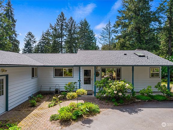 Need a little space? Rare 1542 SF rambler with a 0.61-acre lot! There is room for a shop, ADU, possibly subdivide??? Very well-maintained home features gorgeous ¾” oak HDWD floors in almost every room, updated windows, skylights, newer roof, and HVAC system. Primary bedroom features ensuite bath and a slider out to the patio w/ awning to watch the sunsets. The yard is full of mature landscaping, beautiful gardens and is surrounded by tall fir trees that provide lots of privacy. Tons of storage plus an oversize 2-car garage. This home is located in between Hicks and Long Lake and minutes to schools, shopping, and I-5. NO HOA!