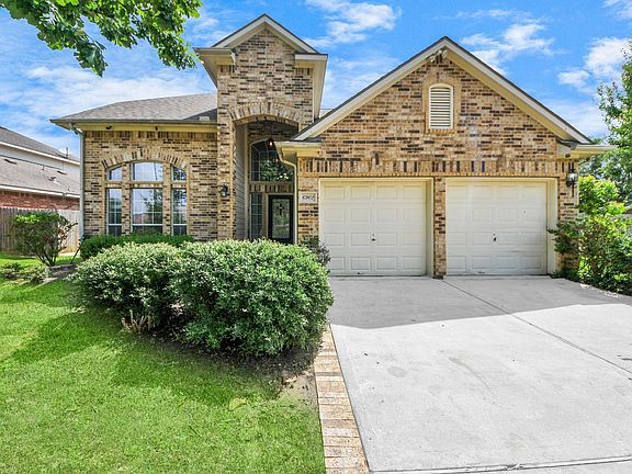Beautifully updated home on an oversized corner lot with mature trees and lush landscaping. Recent upgrades include fresh interior paint throughout the house, new vinyl flooring upstairs (no carpet), brand new AC, and sprinkler system. Grand entry with wood-stained glass door opens to soaring ceilings and abundant natural light. Formal living and dining rooms with elegant archways. Family room features hardwood floors and a tiled gas log fireplace. Open-concept kitchen with breakfast area, bar seating, and two pantries. First-floor primary suite with dual sinks and large walk-in closet. Upstairs offers a spacious game room with tray ceiling, two bedrooms, full bath, and walk-in attic for extra storage. Oversized closet under the stairs adds convenience. Centralized with numerous markets and shopping centers. Move-in ready and conveniently accessed to FM 529, Hwy 6, and Grand Parkway 99.