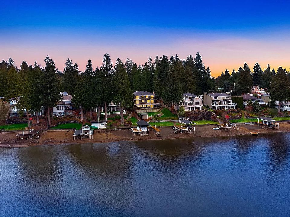 Lake Tapps waterfront home! Located on a dead-end road giving added privacy. Spacious 4,126 sqft home with 5 bedrooms, 3.25 bath, 2 fireplaces, and a full second kitchen on the lower level. Hardwood flooring, kitchen with island, eating bar and butler pantry, formal living and dining room, and a private 5-piece master bath. Two private decks on upper level and one full deck on main level provide great lake views! Fully terraced rear yard leads down to two docks, boat house and a fire pit.