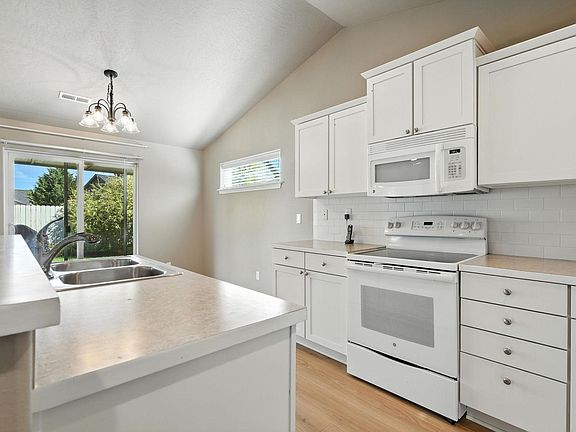 MLS# 285429 This charming 3-bedroom, 2-bath rambler offers 1,408 sq ft of bright, open living space with vaulted ceilings, a cozy gas fireplace, and a spacious kitchen with breakfast bar. Built in 2015, it features a walk-in closet in the primary suite, a 2-car garage, and a partially covered patio with underground sprinklers. Tucked in a quiet neighborhood with sidewalks, curbs, and city utilities — this move-in-ready home checks all the boxes for comfort, convenience, and modern living.