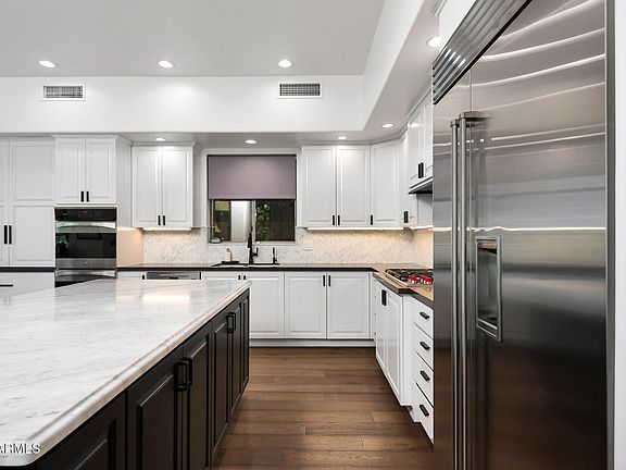 Gorgeous completely remodeled home designed by Calvis Wyant in the highly sought after community of ''The Reserve at Kierland'' - an exclusive, gated enclave of 17 homes that rarely are available for sale. Located on the impeccably maintained 3rd fairway of the Westin Kierland ''Acacia'' golf course featuring Incredible expansive Kierland Golf & Camelback Mtn views from all common rooms & MBR (with office)! 4BR ensuites + den, 4 baths, 3 car garage with custom storage and flooring with EV charging (3rd garage currently used as home gym). Spectacular 18' ceilings, beautiful oak wood flooring, extraordinary lighting t/o, custom stair casing, new thermal windows, bar area, marble & quartz counters t/o, remote blinds, ceiling fans, all new family room with custom shelving and media center, 81" electric fireplace & 75" TV. Wake up every morning to knock out views from within the stunning all new primary suite with large custom walk-in closet, separate linen closet, and huge custom tiled shower with Grohe faucets and equipment. The gourmet kitchen features large island, Subzero & Wolf appliances, 5 Burner gas cooktop, expanded self-closing cabinetry & exquisite finishes abound. Private resort style backyard is your own oasis with truly impressive golf course and Camelback Mtn views, putting green, lovely conversation area with large gas firepit, high end built in grill and counter, new Sundance hot tub, raised view deck & pool with new filter and heater. This extraordinary home is true "turn-key" & is the essence of luxury living! Not one inch went untouched in late 2024 remodel for the most discriminating tastes. Located within short walking distance of Kierland Commons and Scottsdale Quarter with the best shopping & restaurants in the heart of north Scottsdale, this home is also just 20 mins to Sky Harbor & 5 mins to Scottsdale Airpark and is offered at a very competitive sf price for homes of this caliber. Furnishings are available under separate Bill of Sale.