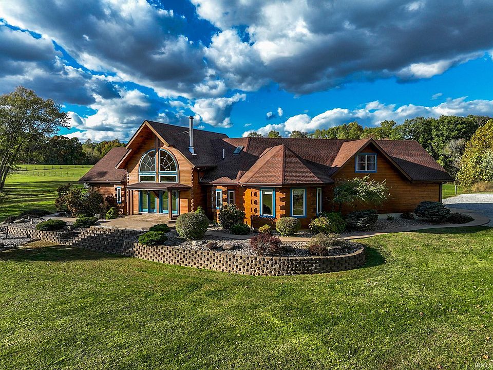 IF YOU HAVE BEEN SEARCHING FOR THAT PRIVATE OASIS LOOK NO FURTHER! THIS LOVELY COUNTRY CABIN IS TUCKED AWAY ON OVER 60 PARTIALLY WOODED ACRES OVERLOOKING A STOCKED POND WITH ABSOLUTELY STUNNING VIEWS FROM ALL ANGLES. THE MOMENT YOU PULL INTO THE WRAPAROUND DRIVEWAY YOU WILL NOTICE HOW METICULOUSLY KEPT THIS PROPERTY HAS BEEN. FROM THE ANGLE OF THE CABIN DOWN TO THE FENCE ROWS THEMSELVES, THIS HOME IS UNMATCHED BY NONE. SET IN THE LIVING ROOM OF THIS HOME AND TAKE IN VIEWS FROM THE CLERESTORY WINDOWS DUE NORTH AND SOUTH. PRIVATE PATIO OFF OF THE PRIMARY SUITE OFFERS A HOT TUB WITH VIEWS TO THE WEST. POLE BARNS FEATURE STALLS, HAY STORAGE, TACK ROOM, AND BREEZEWAYS OFFERING MULTIPLE USES ALONG WITH FENCED PASTURES AND LIVE FENCES. EXTRA LARGE EAT-IN KITCHEN IS FULLY CUSTOM, DINING ROOM WITH CATHEDRAL CEILING, BIFURCATED STAIRCASE WITH OVERLOOK LOFT LEADS TO 2ND AND 3RD BEDROOMS, WATER WELL, GEOTHERMAL AND SPLIT SYSTEMS MAKE FOR EFFICIENCY AND THE LIST GOES ON. RECENT UPDATES INCLUDE ROOF, HVAC, WINDOWS, FLOORING, POLE BARNS, FENCING, AND SO MUCH MORE. ALL APPLIANCES AND ONE YEAR HSA HOME WARRANTY ARE INCLUDED WITH THIS HOME.