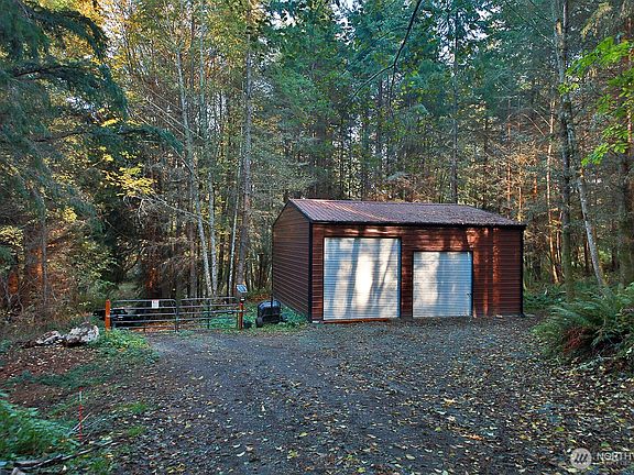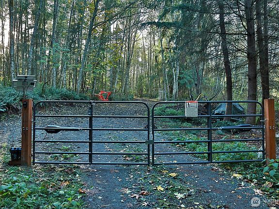 Private and serene, nearly 10 acres with a private well installed and a septic permit good until August of 2027. Two gated entry points. The main gate uses solar power. The other gate is closer to the power in the street. An insulated 30 x 35 garage can accommodate an RV. 6kW 48v 120/220 solar system with two mounts that track the sun, in case you want to live off-grid. (not set up) This is a spectacular property with firs and alders, paths cleared throughout for easy access and walking. This light-filled property is an ideal choice for building your dream home or setting up a glamping experience. Easy access to and from the ferry. (approx. 5 minutes)