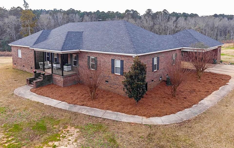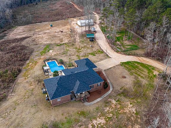 Tranquil & private, surrounded by heavily wooded with hardwoods and trails. This all brick home offers a beautiful inground pool w/ full bath outside, a 30x48 workshop w/ water, elec, and RV hookup, & a full dressage arena with 4 stalls and paddocks. Wonderful large porch; open 3-car carport w/ ceiling fans, perfect for entertaining. Beautiful hardwood floors. French Doors from owners bedroom opens to pool area. Tons of kitchen cabinetry, huge walk-in pantry w/ built-in shelves & laundry room. Built-ins in 4th bedroom/office, great room with. 800 sq ft bonus area with large closet. 700 sqft floored walk in attic. Easily handicap transition. Newer HVAC systems, disposal, and water heater. Brand new water softening system. Fiber internet available.
