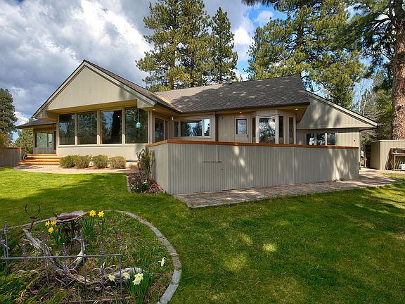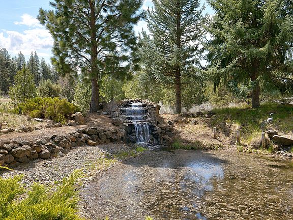 Discover your private retreat just minutes from downtown Sisters, boasting stunning views of the Three Sisters and Black Butte. This picturesque property, set on beautifully landscaped acreage, features a tranquil water feature with a waterfall and stream, perfect for serene living. The single-level home showcases a bright, open-concept layout. The spacious, updated kitchen effortlessly connects to the dining area and great room, highlighted by vaulted ceilings and a cozy wood-burning fireplace ideal for gatherings. This residence includes three bedrooms and three baths, featuring a luxurious primary suite with an ensuite bath, walk-in closet, and direct access to a deck overlooking the scenic grounds. Additional spaces include an office, laundry room, pantry, and a charming breakfast nook, thoughtfully designed for comfort. For hobbyists and outdoor enthusiasts, the home offers an oversized two-car garage and a 1,728 sq ft barn/shop, presenting endless possibilities.