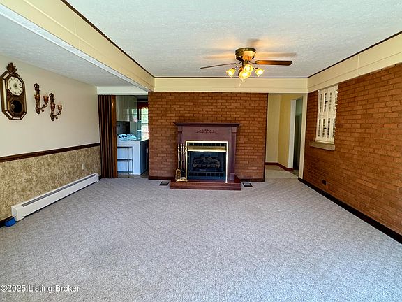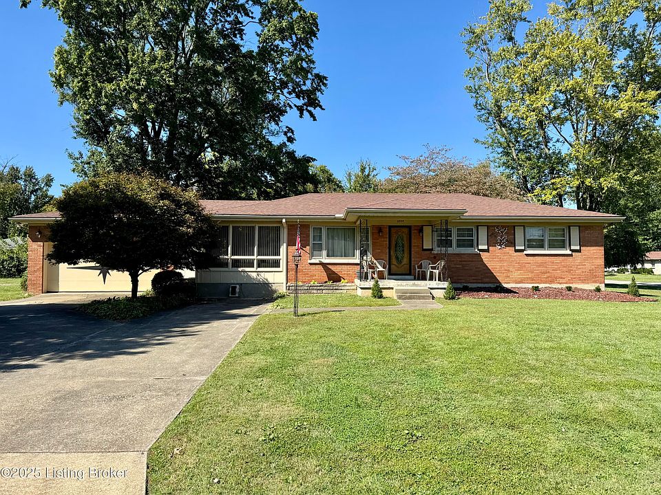 Listed for sale is this one owner home impeccably maintained in Pioneer Village off of Preston Highway in Okolona. Home is a sprawling three bedroom ranch home sitting on nearly a half an acre of land on corner lot with private fenced in back yard. Home has two driveways one accessible to garage and one for additional parking. Enter the home into large family room with ventless fireplace with laundry room off of the side of room. Proceed into open kitchen with new lvp flooring, counter tops and refrigerator. Further into dining area, sitting room, three large bedrooms and full bathroom. Home has carpet that can be removed showcasing original hardwood floors. Home has boiler heat, central hvac cooling and natural gas water heater. Washer and dryer remain with home.