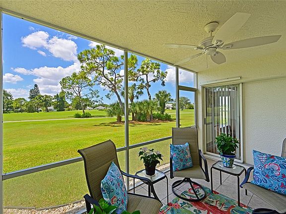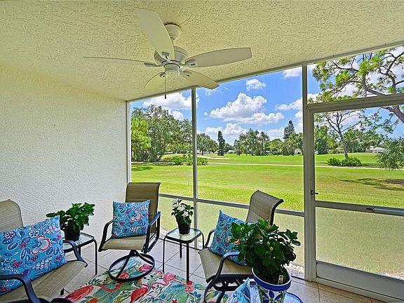 **Huge Price Reduction**Fabulous first floor 2/2 updated condo w/ Garage at the Village of Tara Golf and Country Club could now be yours! Spectacular southern views, of the 10th hole at TGCC from your screened in lanai. This home has been updated from floor to ceiling. Open floor plan has new luxury vinyl plank floors, updated kitchen, and baths. New baseboards throughout, custom shelving in the closets, new blinds, all new appliances, all popcorn ceilings removed, and freshly painted. Eat in kitchen has pantry closets and sliders out to a back lanai for further outdoor dining. Stone counters, new stainless appliances and loads of cabinet space gives you all you need for the perfect kitchen. Living/dining room has sliders out to the second lanai, which gives you the Birdseye view to the 10th hole of the golf course. Gorgeous sunsets and breathtaking sunrises await you from this southern exposure home. Primary bedroom has two walk-in closets, en suite bath with renovated walk-in shower and vanity. Bay window and sliders to the lanai capture the green golf course view from your bedroom. Split bedrooms, the second bedroom has access to its own full bath and laundry area. This home even comes with Upgrades transparent Hurricane Shutters !!! Ownes are happy to leave the bedroom set and sleeper sofa for buyers who are interested. Class A membership at Tara Golf and Country Club gives you golf, bocce, tennis, pickle ball,( new pickle ball center being built with 5 courts) full fitness center, community pool and much more. Golf course was renovated in 2023, new tee boxes, fairways and greens w/ No assessments to the members. No CDDs. Many social clubs and activities to meet all your active Florida lifestyle requirements. Close to highways, shopping, great dining, and the best beaches in the Sarasota/Bradenton area. Welcome to the best Golf community in the area, welcome to Taradise! Comes with One Year Home Warranty!
