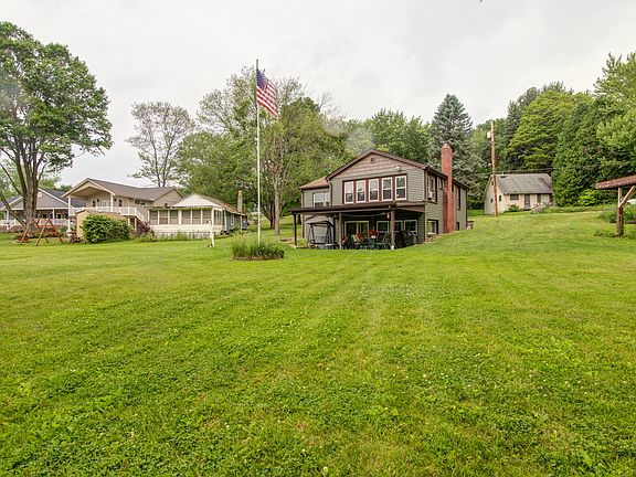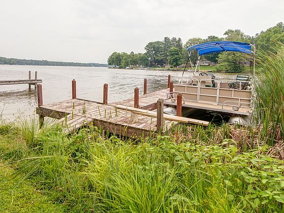 You will take a double take, at this double lot at Guilford. Highly sought after Lake front living at its best. Enjoy tranquil daydreams from the lake level patio, or entertain your family and friends. This lovely home has 2 spacious bedrooms and 2 full bathrooms. One has been completely renovated to include a tiled floor and stall shower. The living room offers alluring lake views. The lake level features the kitchen, recently updated, a dine in space and sitting area. Additionally new windows and new siding have been done. Wood burner on lower level and back up generator, 2 car size carport. At the waters edge there are cattails that provide a perfect bird sanctuary.
