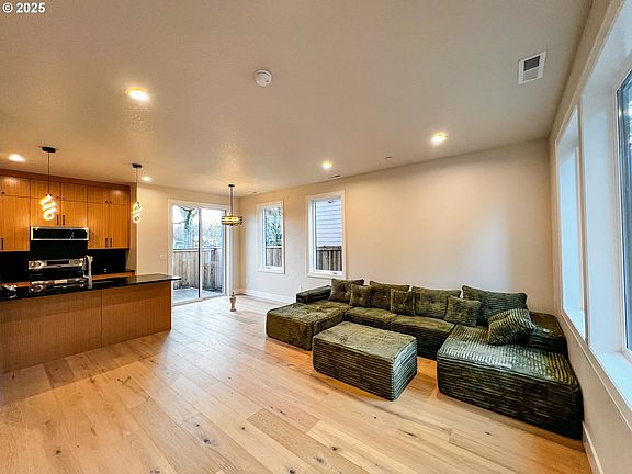This 2025 built home features 9-foot ceilings on the main level with an open floor plan. Seamless flow from living to dining to a sleek kitchen with white oak veneer cabinetry, black granite and modern finishes including soft close drawers. A main-level half bath adds convenience for everyday life and entertaining. Upstairs are three bedrooms and two full baths, including a primary suite with a walk-in closet, private balcony, and en suite with double vanity. Laundry is smartly placed upstairs. Quality finishes are found throughout this home: Engineered hardwood flooring, window casings, trim, sound insulation in bedrooms, herringbone tile floors in bath, solid core doors, and insulated garage with textured sheetrock. Located minutes from parks, shopping, dining, and I-205, this low-maintenance home blends comfort, style, and convenience in one beautiful package. Whether you’re starting fresh or searching for your forever low-maintenance home, this modern floor plan with high quality upgrades is a true showstopper.