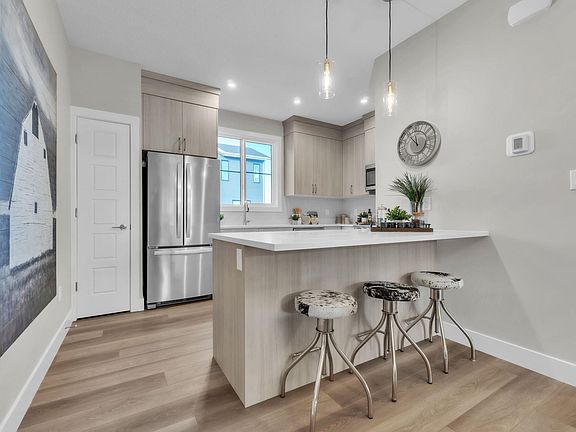 Welcome to the Everly Townhomes,a refined development by Brookfield Residential,where contemporary living meets suburban charm.This UPGRADED “Gillespie” two bedroom townhome will leave you breathless!The modern kitchen has warm wood cabinets,stainless appliances(w/gas range),quartz,tile backsplash+dining area.The open concept living room boasts vinyl plank floors+garden door to a private balcony.The upstairs level offers two tranquil primary bedrooms both w/luxurious 4pc ensuites+ample closet spaces.Other Features:Tandem 2-Car Garage,Main Floor 2pc Bath,Upstairs Laundry,Full Height Kitchen Cabinets,Smart Home System...The list is endless!Enjoy the year round events+amenities the Orchards has to offer w/access to the private club house;boasting a spray park,skating rink,playgrounds,tennis+basketball courts.Conveniently located only steps to shops,restaurants,schools,parks,trails+a short drive to major freeways+the airport.*Builder Bonus-2yr FREE Condo Fees+a $4K Brick Gift Card.Welcome to your Dream Home!