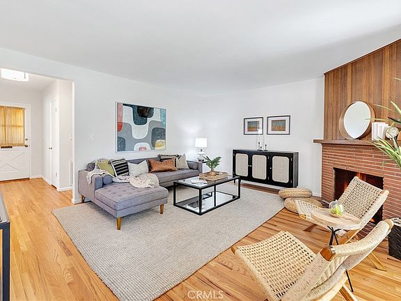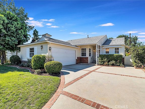 Classic Mellenthin Style Ranch with Birdhouse features Newly Refinished Wood Floors and New Interior Paint throughout. This Single Story Home has a Bright Open Living Room w/Brick Fireplace and Large Picture Windows overlooking the Lush, Green Backyard. Step out onto the Covered Patio for Morning Coffee or Outdoor Dining - Perfect for Indoor/Outdoor Entertaining. Separate Dining Room for Family Dinners. Cozy Eat-in Kitchen with Stainless Stove and New Stainless Refrigerator. Individual Laundry Room. Guest Bathroom off Kitchen. Central Hall Floorplan. Delightful Retro Bathroom. Bedrooms feature Contemporary Paint and Hardwood Floors. Ample-sized Yard includes Covered Patio and Dual Sided Brick Fireplace for Dining or just Lounging and a Grass Area for Pets or Play. Other features include Copper Plumbing, Dual Pane Windows and Double Car Garage with Automatic Door Opener. Centrally located and just minutes from 101, 405 and 170 freeways as well as Valley College.