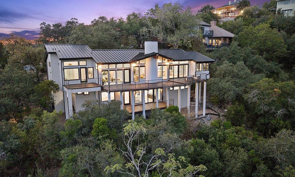 Welcome to 6905 Ladera Norte, a contemporary hillside retreat designed to impress at every angle, meticulously renovated in 2019 and perched above Northwest Hills Austin with sweeping Hill Country views. With 4,204 square feet of pure sophistication, 4 bedrooms, and 5 bathrooms, this residence was built for those who demand space, light, and style. The great room features elegant, soaring ceilings, exposed beams, a stone fireplace, and walls of glass that flood the space with natural light. The chef’s kitchen is a showstopper: premium appliances, endless counter space and custom cabinetry. A sunlit office offers panoramic Hill Country views, while the primary suite provides a private sanctuary with its spa-like bath: dual vanities, a soaking tub, an oversized walk-in shower, and a beautifully appointed dressing closet. Multiple outdoor living areas, including a spacious upper deck and two patios, invite moments of calm, conversation, and celebration under vast Texas skies. Hardwood and tile floors, thoughtful architectural details, and an inviting under-stair nook add character throughout, while an attached garage provides everyday convenience. This is more than Hill Country living, it’s elevated, curated, and move-in ready for the next chapter. Experience the elegance of 6905 Ladera Norte in person and schedule your private tour today.
