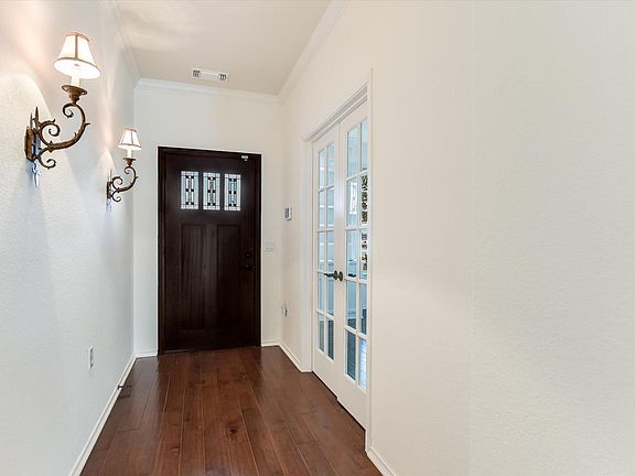Craftsman-style home in a well-maintained subdivision with an affordable price. Meticulously cared for with many upgrades. Kitchen features extra counter space and cabinets with glass doors to separate it from the living area. Wood floors throughout, except in two bedrooms used as craft rooms. Good floor plan with the main bedroom at the back, separated from the other two bedrooms. Large, extra living room at the front with French doors for privacy, could serve as an optional study. Seller added a small deck at the back with steps down to a unique, manicured, and landscaped yard with trees and an arbor with a bench, creating a welcoming space to relax. Very inviting home with lots of windows. All appliances, including washer, dryer, and refrigerator, convey. Low utility bills due to solar panels. Convenient location within 10 miles of downtown Austin, Tesla, Amazon, and Qualcomm.