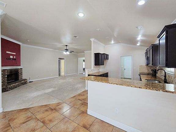 Charming 4-Bedroom Home with Inviting Style! This beautiful 4-bed/2-bath gem offers an open layout with soaring ceilings, a cozy corner fireplace, and a kitchen made for gatherings—granite countertops, abundant storage, breakfast bar, pantry, and backyard views. The secluded primary suite features dual sinks, two walk-in closets, shower, & a relaxing soaking tub. Enjoy outdoor living under the covered patio with plenty of space to entertain. Community perks include walking trails, a playground, & a brand-new elementary school nearby!
