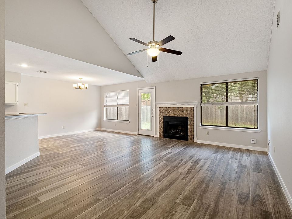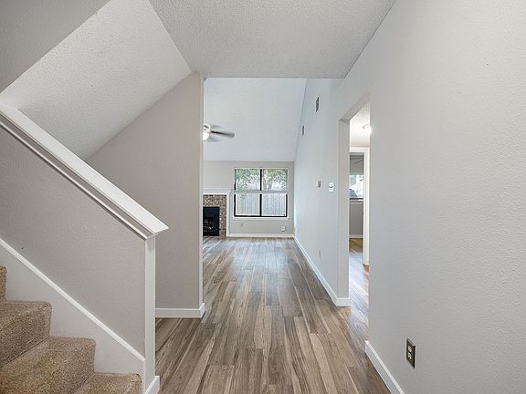 Beautiful 3 Bedroom, 2 Bath Home in Milwood's Rattan Creek ~ Updated Finishes Throughout! ~ Spacious Living w/Vaulted Ceiling & Fireplace ~ Kitchen Open to Living w/Lot's of Cabinet Space & Breakfast Bar ~ Master Suite Upstairs w/Extended Double Vanity & Large Walk-In Closet ~ Secondary Bedrooms Downstairs w/Full Bath ~ Wood Look Ceramic Plank Tile Down & Premium Grade Carpet Up ~ Privacy Fenced Backyard w/Patio & Mature Oak Trees ~ Sprinkler System ~ 2 Car Garage w/Opener ~ Near Apple & Domain ~ Schools, Shopping & Great Restaurants Nearby