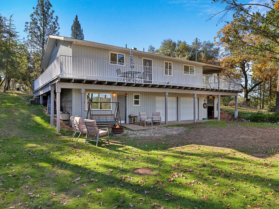Discover the epitome of privacy on this expansive 24-acre estate, enveloped by approximately 20 acres of BLM land. This charming 2-bedroom, 2-bathroom home features recently remodeled baths and beautifully refinished original wood floors. The spacious master bedroom opens onto a covered deck that wraps around three sides of the house, showcasing breathtaking views. With both a well and city water for improved pressure, this property offers versatility, including additional square footage downstairs with a kitchen and full bath, making it ideal for a man cave, she space, home business, or ADU potential. Whether you dream of starting your own small farm or relish the serenity of this gold mine, the possibilities are endless!