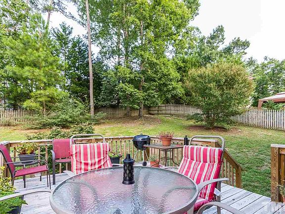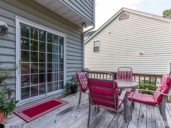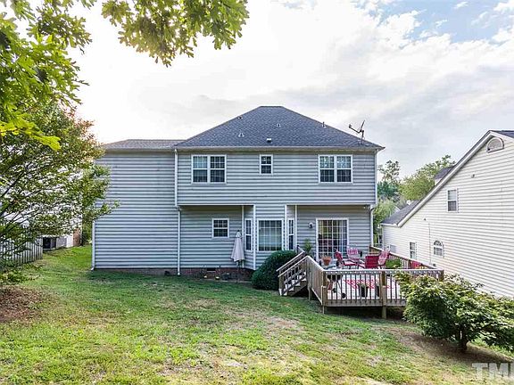 Great location w easy access to 401 and 540. New roof. New retaining wall. New spacious deck built last year, perfect for entertaining & enjoying the fenced-in back yard. Updated half bath w tile on main level. Large kitchen w 8x9 eat-in breakfast area at bay window. Master bdrm has large 12x9.5 master bath w whirlpool tub & walk-in closet. Ceiling fans in all bdrms, dining & family rms. Garage has 10x2.5 workbench, built-in shelving, pegboard & new door opener. Needs new carpet & some paint to move-in.