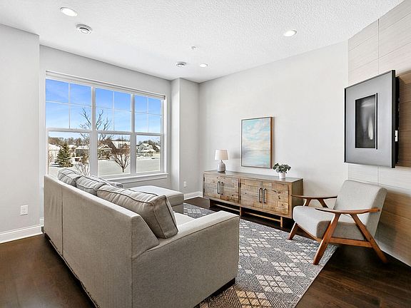 shower, dual vanity, and custom walk-in closet; 2nd bedroom has a private access to the hall bathroom as well. The main floor family room has a gas fireplace. The full-size washer/dryer is conveniently located on the upper level, where there is a sitting/desk area which opens to a huge deck space. This neighborhood features 2 association maintained swimming pools, including one with beautiful views overlooking Lake Minnetonka. In addition, there's a wonderful trail system which is great for walking and
