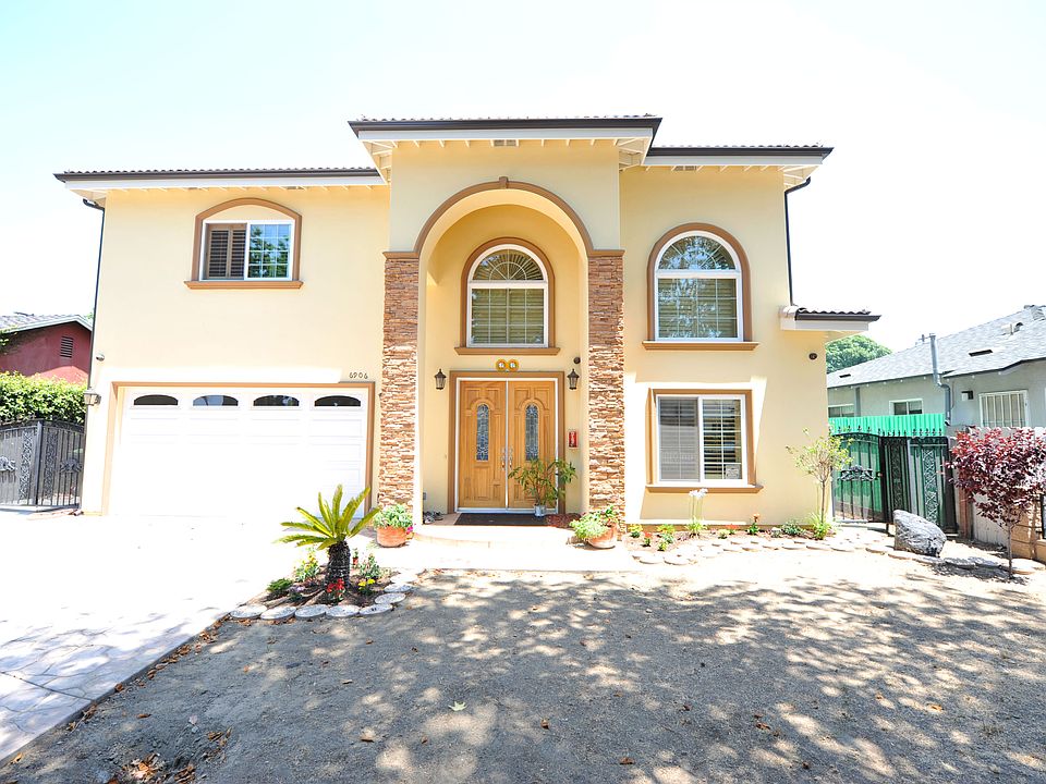 Gorgeous two story Traditional Custom Home built in 2012 on a quiet tree-lined street. Home features large salt water pool with pebble tech bottom and Koi pond (can be used as kiddie pool). Guest Suite on first floor and a spacious Master Suite upstairs, plus 3 other bedrooms upstairs. Attached two car garage with one detached one car garage in back with oversize storage space (can be used as home office). Custom interior with recessed custom ceilings, medallion ceiling covers, bamboo hardwood flooring, maple cabinets and plantation shutters throughout the home. Marble flooring in the family room and kitchen. Wireless security on the premises with 8 wired video cameras. All systems were brand new in 2012, including a 200 amp panel, new main sewer line, dual HVAC, 2 car garage attached, one car garage and bonus room detach. Can be used as an office, granny unit, cabana or storage. Solar heating for pool, solar attic fans. Ethernet wiring throughout. Large covered patio.