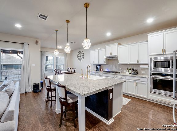 Beautiful and spacious 2-story home featuring 4 bedrooms and 3.5 bathrooms with an open floor plan designed for comfort and functionality. All bedrooms are located upstairs, along with a versatile loft-perfect as a second living area or game room. A dedicated office is located on the first floor, offering a quiet space ideal for remote work or study. The large kitchen is a chef's dream, featuring a generous island, stainless steel appliances, granite countertops, gas cooking, and a huge walk-in pantry for ample storage. The primary suite includes a luxurious ensuite bathroom with double vanities, a soaking tub, and a separate walk-in shower. Step outside to a large, covered patio and a fenced backyard-ideal for outdoor entertaining or relaxing evenings. Conveniently located near Randolph AFB. Minutes to 1604 and I10. $30 resident amenity package per month. $149 pre-move in assessment. $75 application fee. $250 lease admin fee. $25 Pet fee.